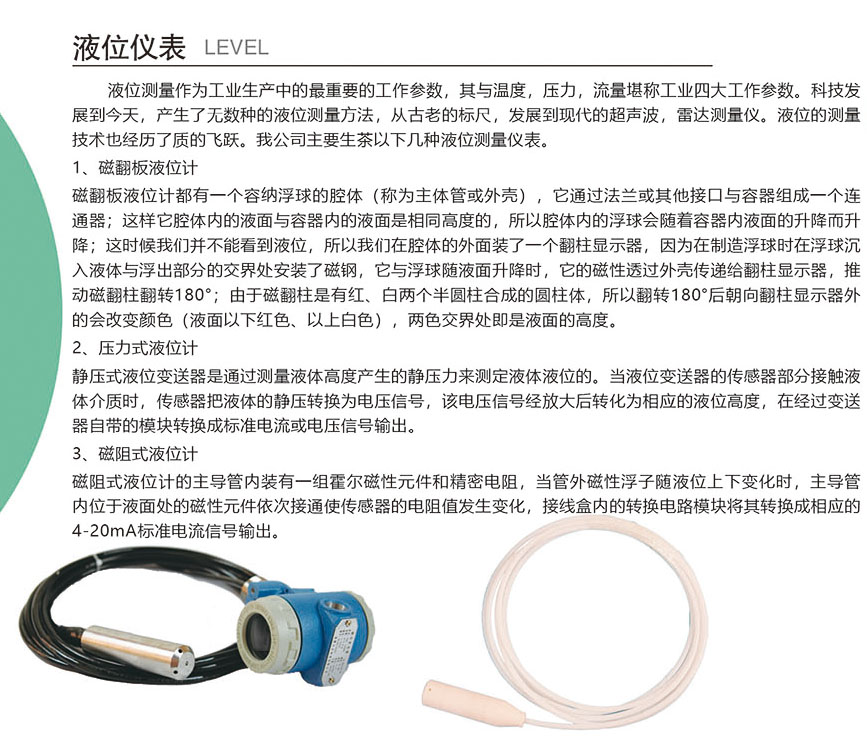 液位儀表簡介 發(fā)布時(shí)間:2023/12/29 10:23:04作者:來源:點(diǎn)擊:字號(hào):大中小 元啟機(jī)電:http://www.37loves.com/ 歡迎您的光臨! 請(qǐng)百度一下:元啟機(jī)電